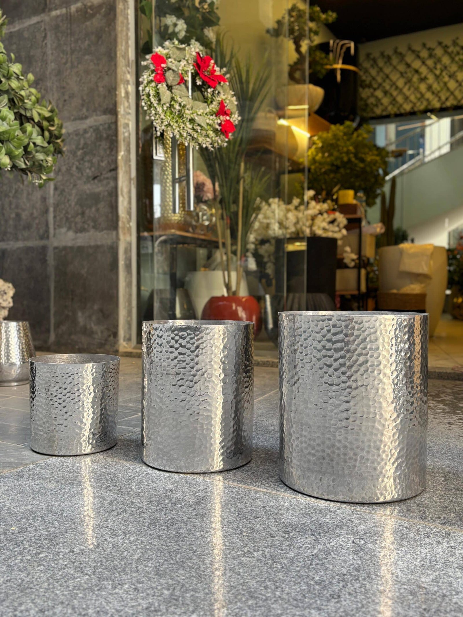 The reflective surface of the aluminum creates a stunning contrast with green foliage, instantly elevating the look of any plant you place inside.