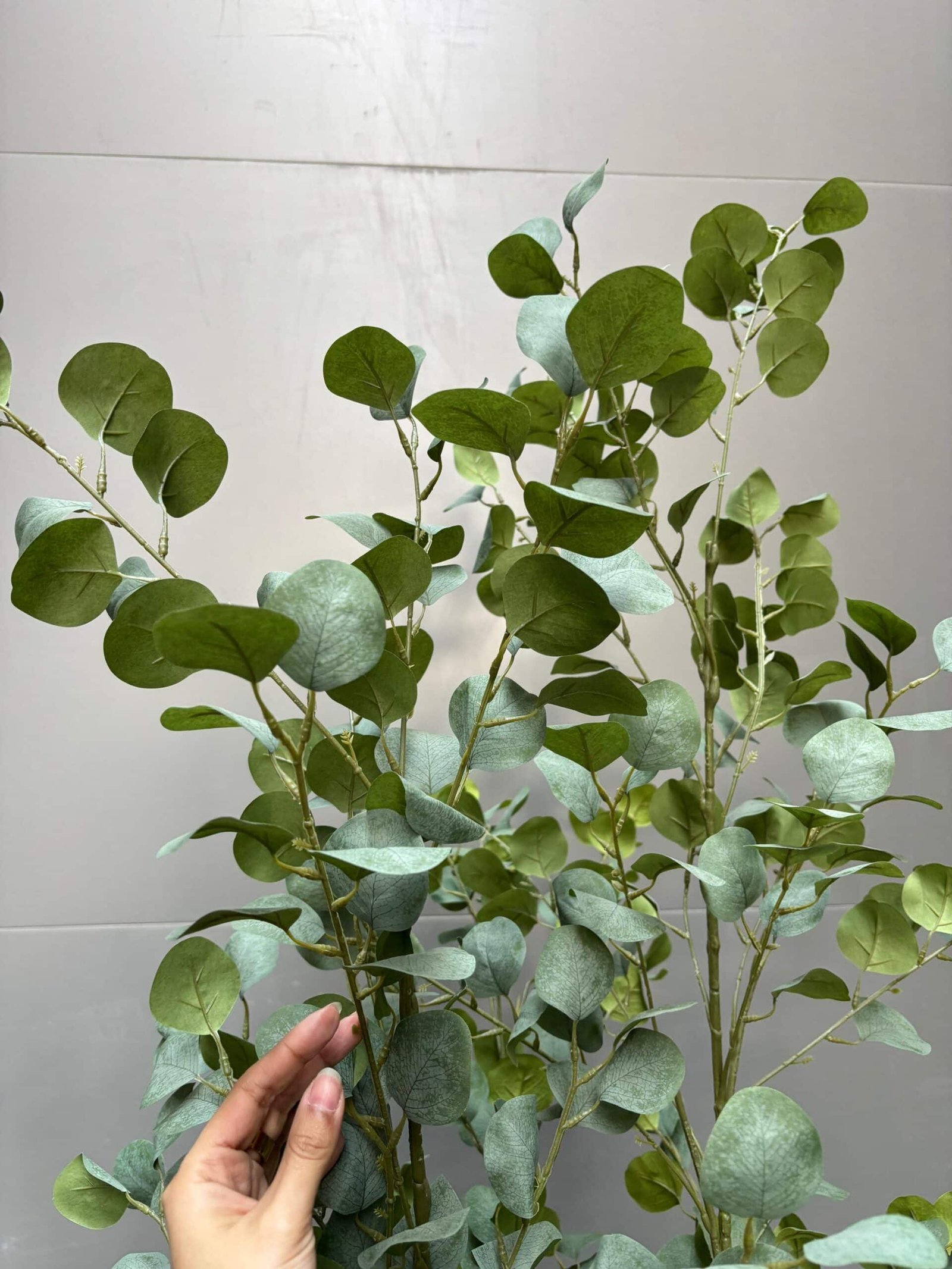 A beautiful artificial eucalyptus tree designed to bring a fresh and natural look to any space. It features soft round green leaves and multiple branches that create a full, elegant appearance. With its natural-style trunk and realistic foliage, this tree is perfect for adding a modern botanical touch to living rooms, offices, or entrances while staying vibrant all year with no maintenance needed.