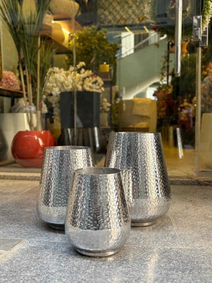 The reflective surface of the aluminum creates a stunning contrast with green foliage, instantly elevating the look of any plant you place inside.